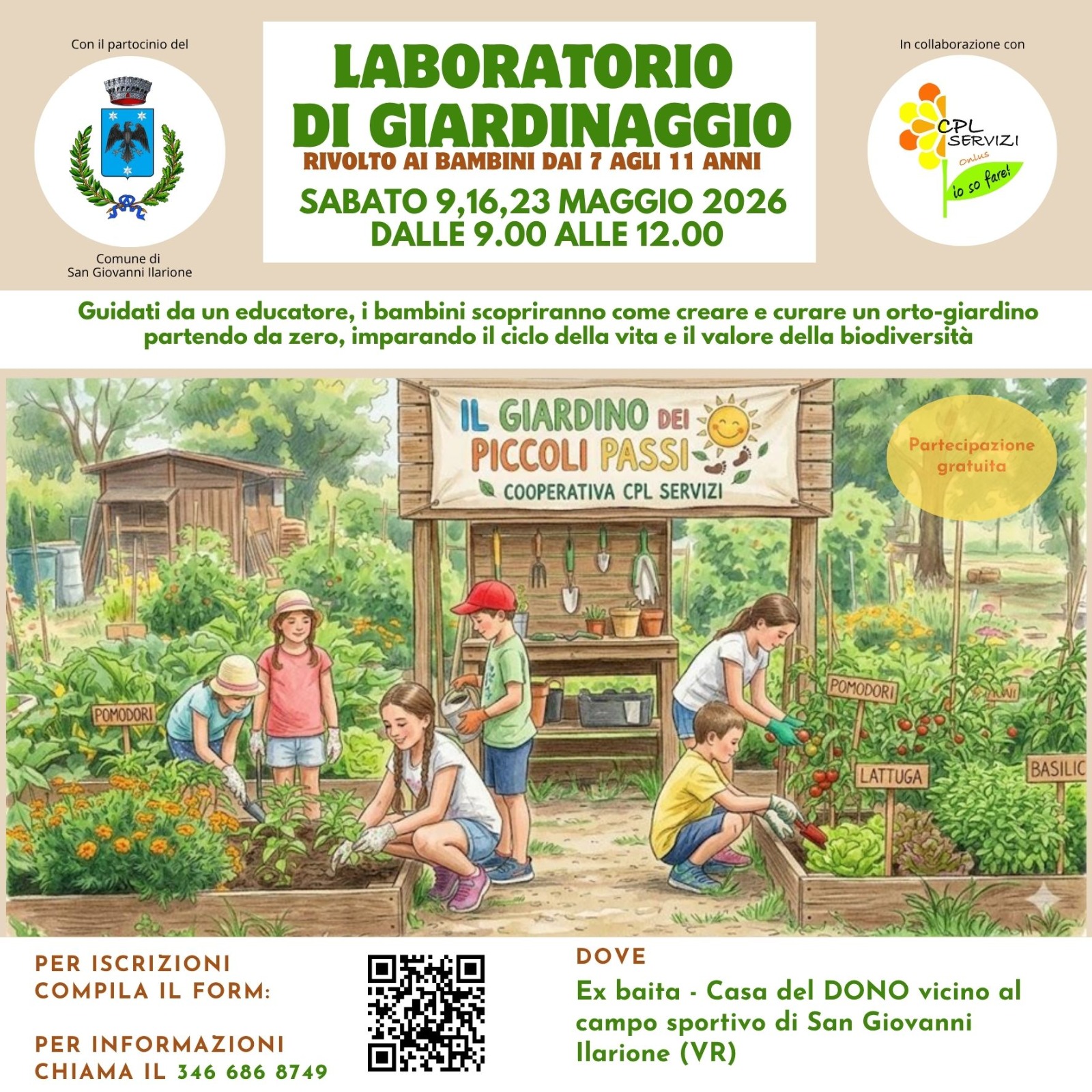 Laboratorio, promosso dal Comune di San Giovanni Ilarione, condotto da un educatore dove i bambini saranno guidati alla creazione e cura di un orto-giardino, imparando il ciclo della vita e il valore della biodiversità.